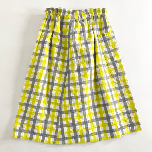 47b5 《美品》 me ISSEY MIYAKE ミーイッセイミヤケ 台形スカート フレアスカート ウエストベルト付き M182FG691 イエロー グレー コットン100% レディース