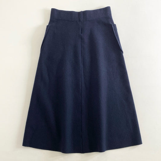 81h12 DEMYLEE デミリー ニットスカート ひざ丈 フレアスカート ボトムス XS ネイビー ウール