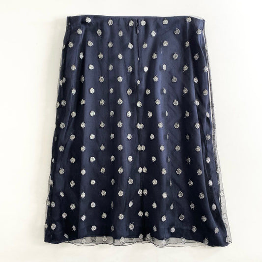 51f18 CHANEL シャネル 03A チュールスカート ココマーク ドット 40 ネイビー シルバー フランス製 水玉