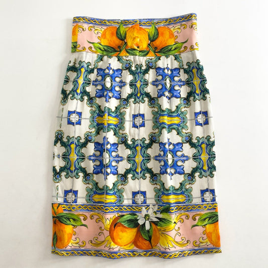 59g26 《未使用保管品》 タグ付 イタリア製 DOLCE&GABBANA ドルチェアンドガッバーナ マヨリカ 総柄プリント スカート ボトムス F4V38T 36 マルチカラー シルク