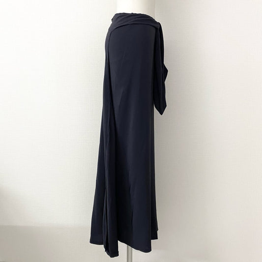 39h21 フランス製 CHANEL シャネル 手書きタグ ロングスカート 巻きスカート サイズ42 ネイビー シルク100% vintage chanel ヴィンテージ