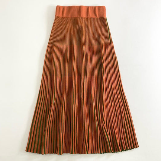 35g7 《美品》 MARNI マルニ イタリア製 プリーツ ニット ロングスカート ボトムス ウエストゴム 36 オレンジ グリーン ウール