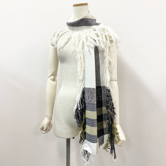 a5-1 《未使用保管品》定価¥42,900 SEEALL シーオール HANDLOOM STOLE FRINGES フリンジストール ST882 ホワイト グリーン マフラー タグ付き