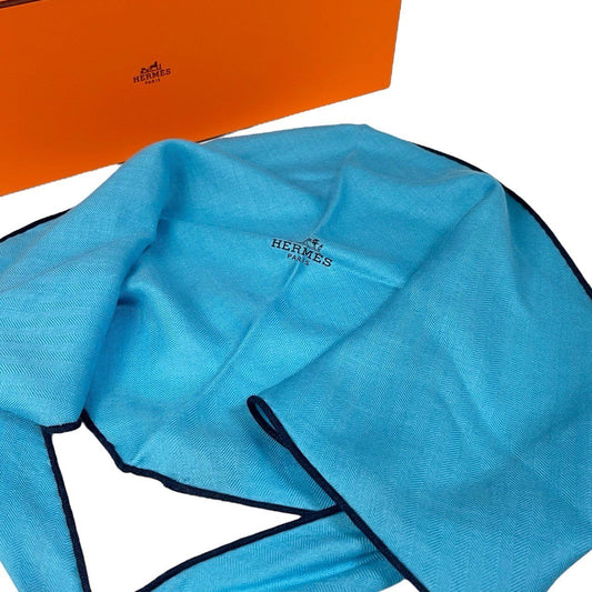 l12《美品》 HERMES エルメス LOSANGE ロサンジュ カシミヤ スカーフマフラー 443647T ブルー フランス製 ストール ショール 箱有