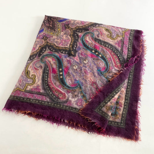 40h8 ETRO エトロ イタリア製 ペイズリー柄 総柄 大判ストール マフラー ユニセックス パープル ピンク系 マルチカラー