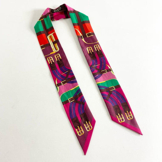 1g13 HERMES エルメス スカーフ リボンタイ ボウタイ ピンク シルク100% バンダナ フランス製