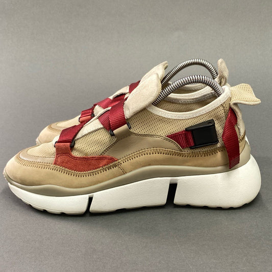 1l3 Chloe クロエ SONNIE ソニー スニーカー 37 ベージュ レッド ローカット シューズ イタリア製