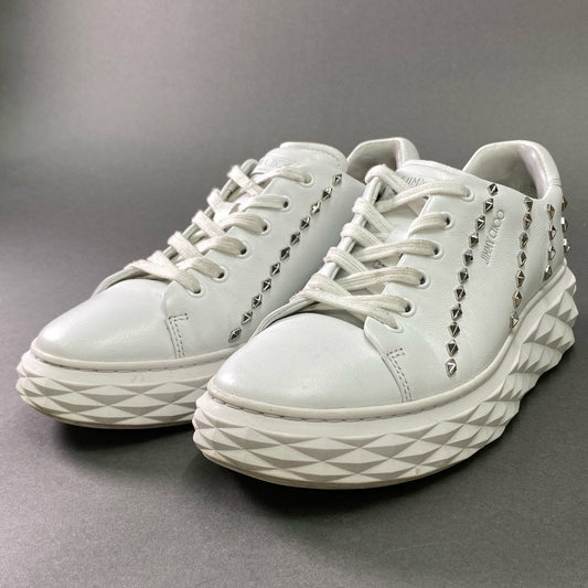 6k5 JIMMY CHOO ジミーチュウ Diamond Light Maxi スタッズスニーカー 厚底スニーカー サイズ38 ホワイト レザー レディース 女性用 靴