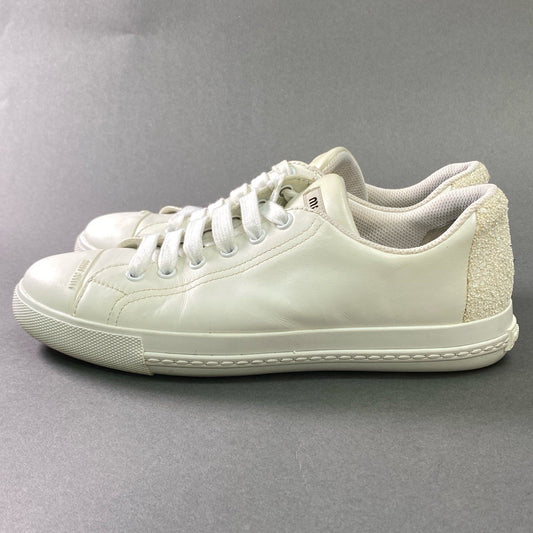 3l19 miumiu ミュウミュウ バックグリッター レザースニーカー 37 ホワイト Leather ラメ シューズ