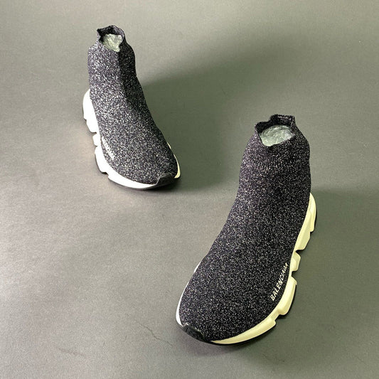 3l20 BALENCIAGA バレンシアガ SPEED TRAINER スピードトレーナー 25cm ブラック シルバー ラメ ソックススニーカー シューズ イタリア製