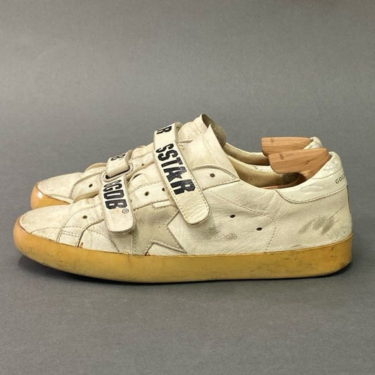 2l25 GOLDEN GOOSE ゴールデングース OLD SCHOOL オールドスクール USED加工 ベルクロスニーカー 40 ホワイト レザー SUPER STAR GGDB ユーズド加工 シューズ