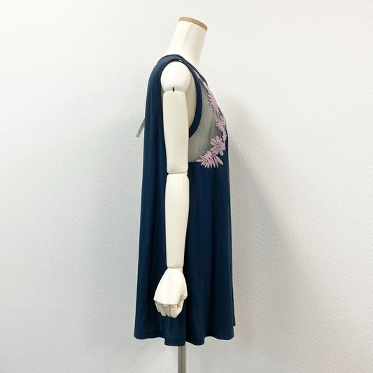 70i2 《未使用保管品》 タグ付 TOKUKO 1er Vol トクコプルミエヴォル シアー素材切替 花柄刺繍 ノースリーブワンピース チュニック 日本製 9 Mサイズ ブラック レディースo07t
