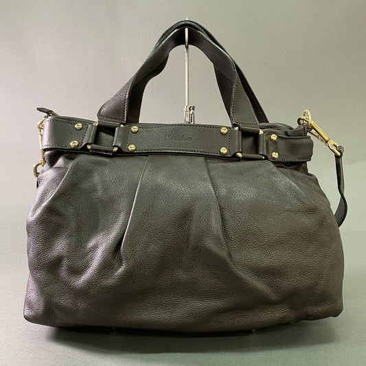 Hj29 Max Mara マックスマーラ 2WAY レザーショルダーバッグ ダークブラウン Leather ハンドバッグ イタリア製