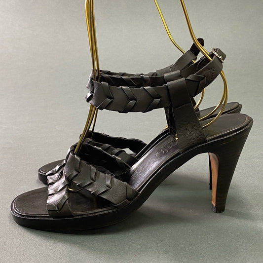 3c10 HERMES エルメス レザーヒールサンダル 37 1/2 ダークブラウン Leather シューズ イタリア製