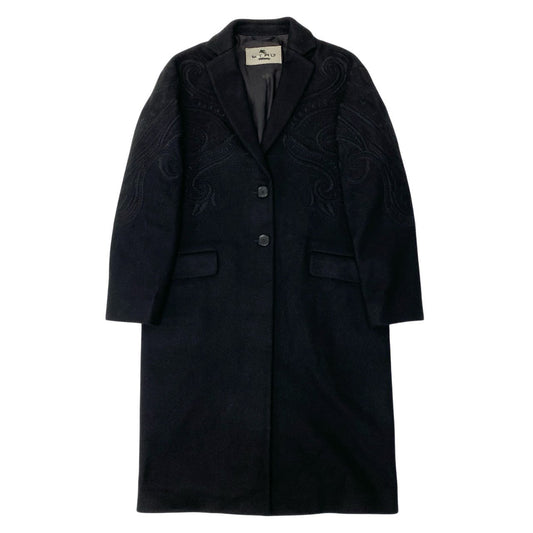 82a15 ETRO エトロ チェスターコート ロングコート ペイズリー 刺繍 ウールブレンド イタリア製 レディース 女性用 サイズ42 ブラックu02t