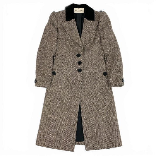 58a21 Vintage VALENTINO BOUTIQUE ヴァレンティノ ブティック チェスターコート ツイード ロングコート ヘリンボーン ウール混 レディース 女性用 サイズ6 ブラック ベージュu02t