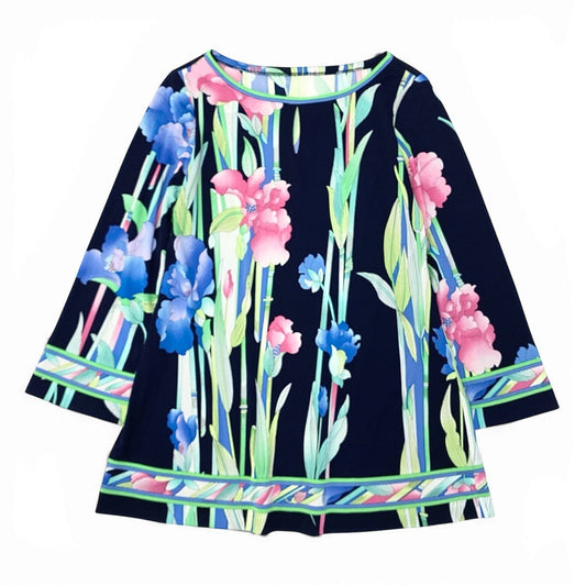 72a28 LEONARD レオナール 長袖カットソー チュニック カンカン素材 美しい花柄プリント 38サイズ マルチカラー レディース 女性用o07t