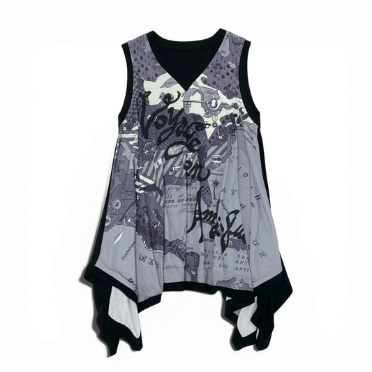37L22 【美品】TOKUKO 1er VOL トクコプルミエヴォル ノースリーブチュニック チュニックカットソー チュール ストレッチ素材 9サイズ ブラック レディースu02t