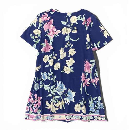11b6 LEONARD レオナール 半袖チュニックワンピース 美しい花柄プリント 0369802 42サイズ ネイビー ピンク コットン100% レディース 女性用u02t