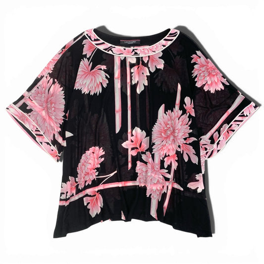 6b12【美品】LEONARD レオナール チュニックカットソー カンカン素材 美しい花柄プリント ストレッチ 0199541 Lサイズ ブラック ピン レディース 女性用u02t