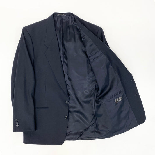 6k1 GIORGIO ARMANI ジョルジオアルマーニ イタリア製 80~90`s VINTAGE テーラードジャケット 2B 無地 フォーマル メンズ 紳士服 39 ネイビー ウール100%o07t