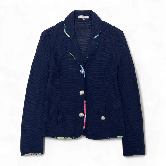 40k18 LEONARD レオナール テーラードジャケット ニットジャケット パイピング 0537892 38サイズ ネイビー レディースu02t
