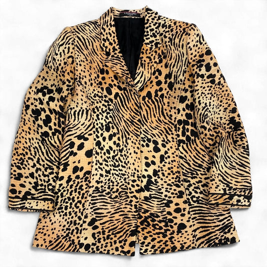 2k19《美品》 EONARD FASHION レオナール テーラードジャケット ロングジャケット アニマル柄 総柄 ウールシルク レディース 女性用 11AR ベージュ ブラックu02t