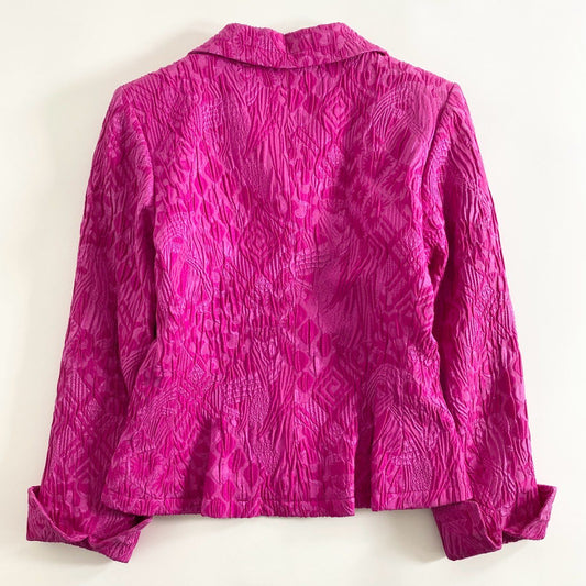 88i27 YVES SAINT LAURENT rive gauche イヴサンローラン リヴゴーシュ フランス製 テーラードジャケット ブレザー 総柄 36 ピンク ウール シルク