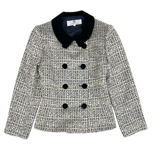35L19 Vintage HERMES エルメス 海と騎兵隊 テーラードジャケット シルクジャケット 総柄 42 アイボリー系 シルク レディース 女性用 フランス製u02t
