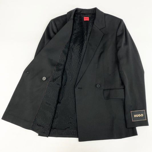 83i3《美品》 HUGO BOSS ヒューゴボス ダブルプレスト テーラードジャケット ブレザー 裏地総柄 ビジネス フォーマル 38 ブラック レディースo07t
