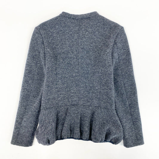 5i12 EMPORIO ARMANI エンポリオアルマーニ ジップアップ ウールジャケット フリルブルゾン 40 グレー レディースu02t