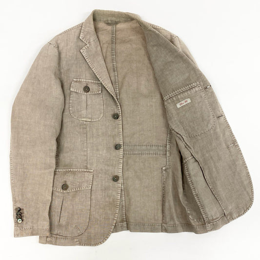 72i3 L.B.M.1911 ルビアム エルビーエム イタリア製 STEVE サファリジャケット 手ブレザー 48 ベージュ コットン リネン メンズo07t