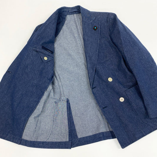 7i25 《美品》LARDINI ラルディーニ テーラードジャケット ダブルブレスブレザー ピークドラペル サイドベンツ 42サイズ インディゴ メンズk02i