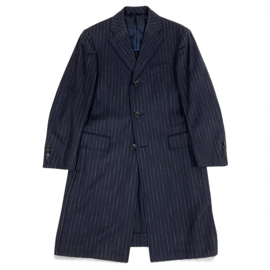 31L8 LANVIN COLLECTION ランバン コレクション ロングテーラードジャケット コートジャケット ストライプ カシミヤ混 45サイズ ネイビー メンズo07t