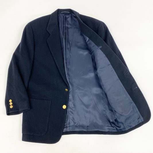24i25《極美品》 BRITISH MADE ブリティシュメイド テムズ テーラードジャケット 紺ブレザー 真鍮メッキボタン L ダークネイビー ウール メンズu02t