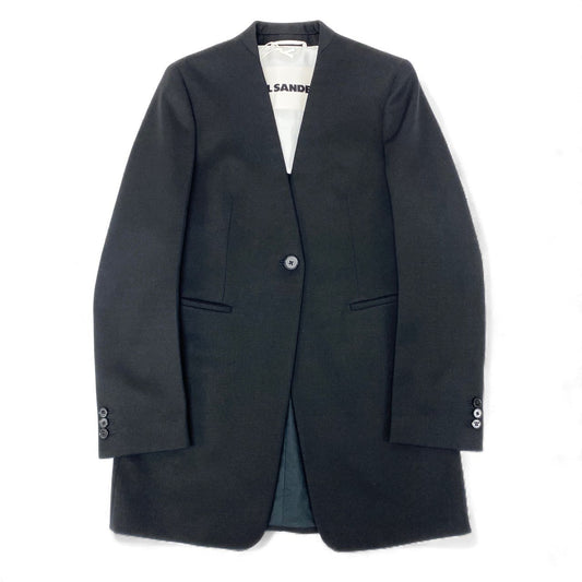 21L9【美品】JIL SANDER ジルサンダー 2024 ノーカラージャケット テーラードジャケット サイズ38 W JACKET 02 TMブラック レディースk02i
