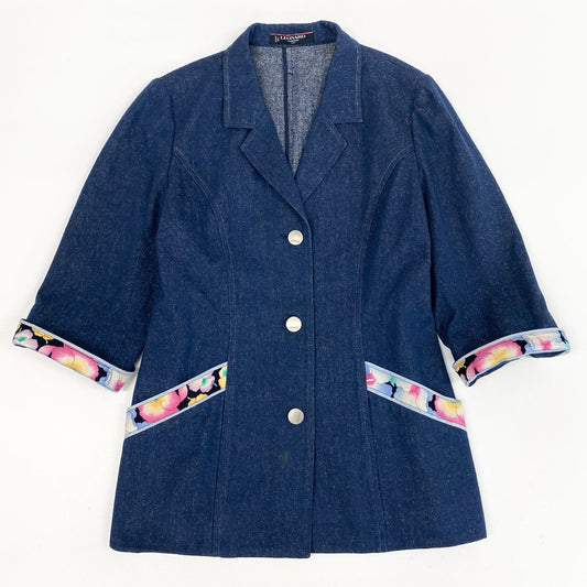 26a26 LEONARD FASHION レオナールファッション デニムジャケット 花柄プリント ライトアウター 13 ブルー レディース 女性用o07t