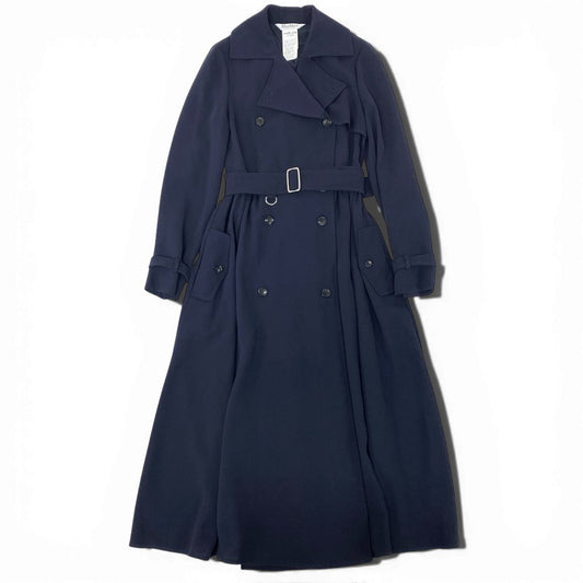 4a9 【極美品】MaxMara マックスマーラ トレンチコート スプリングコート ロングコート シフォン 36サイズ ネイビー レディースk02i