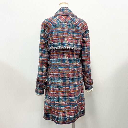 38k12 CHANEL シャネル P48056V35794 ツイード使い トレンチコート スプリングコート 薄手 ツイード転写 ココマークボタン サイズ34 マルチカラー レディース フランス製