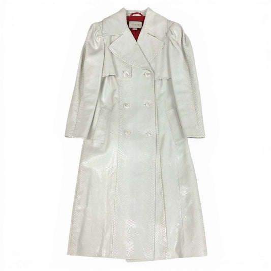 b4【美品】GUCCI グッチ トレンチコート ロングコート ヘビ 裏地 鯉 刺繍 イタリア製 40サイズ ホワイト 蛇革 レディースk02i