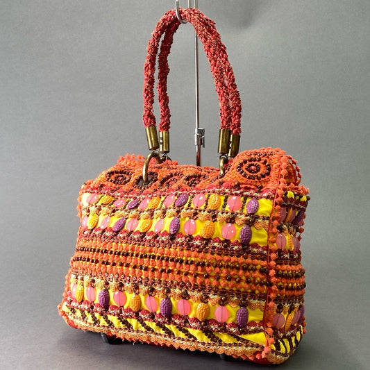 Gl10 JAMIN PUECH ジャマン ピュエッシュ 刺繍 ビーズ トートバッグ オレンジ ワンショルダーバッグ ビジュー カバン レザー 一点物