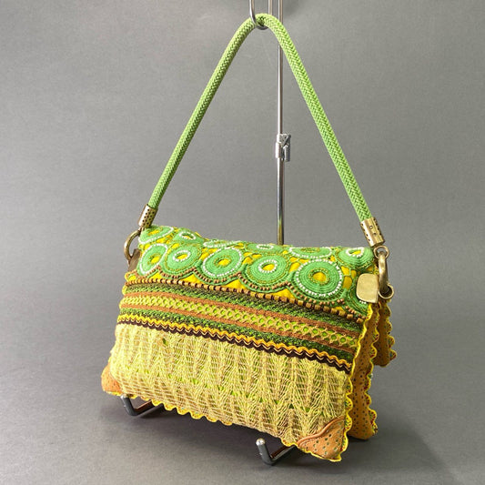 El9 JAMIN PUECH ジャマン ピュエッシュ 刺繍 ビーズ ワンショルダーバッグ グリーン ハンドバッグ 花柄 フラワー カバン 一点物