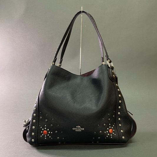 Gb12 COACH コーチ ウエスタンリベット イーディー トートバッグ 57660 ブラック レザー スタッズ ショルダーバッグ 鞄