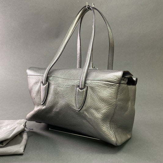 Gb12 Max Mara マックスマーラ ポーチ付き メタリック レザートートバッグ シルバー Leather ハンドバッグ 鞄 イタリア製