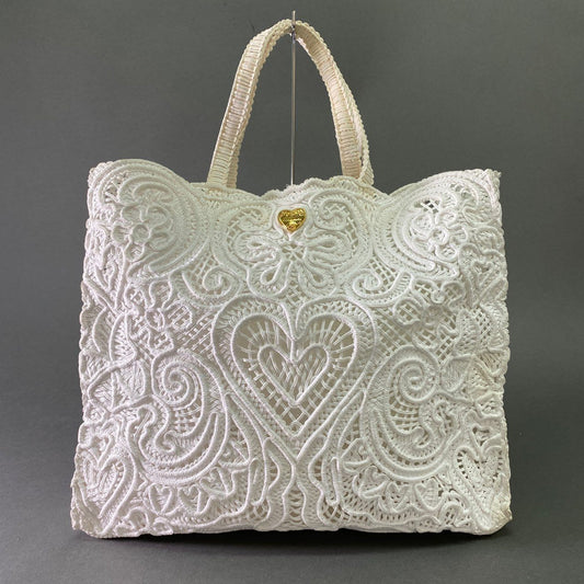 Aa8 DOLCE&GABBANA ドルチェアンドガッバーナ Beatrice ベアトリーチェ コードレスエンブロイダリー 刺繍 トートバッグ ハートモチーフ ホワイト