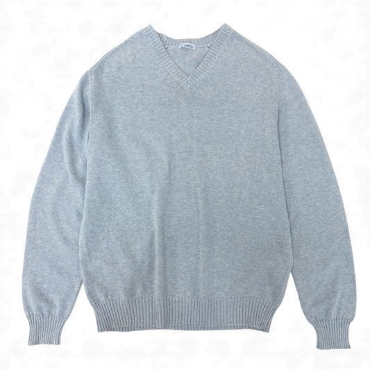19k10 【美品】malo マーロ ニットセーター コットンニット コットン100% Vネック イタリア製 50サイズ ライトブルー レディースu02t
