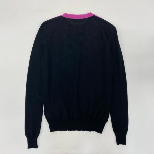 14j9 EMILIO PUCCI エミリオプッチ イタリア製 切替 ニットセーター クルーネック 総柄プリント ロングスリーブ 薄手 シルクウール 56KR60 XS ブラックu02t