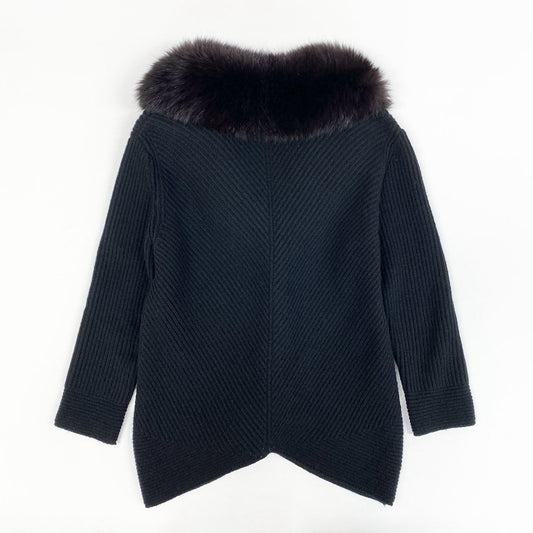 30i30 Blumarine Anna Molinari ブルマリン アンナ モリーナ ニットカーディガン ニットジャケット ファー付き 38サイズ ブラック レディースo07t