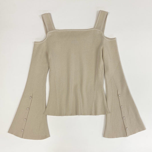 77 ADEAM アディアム ショルダーカット リブニットセーター フレアスリーブ 長袖 肩だし◎ レディース 女性用 43409 XS ベージュu02t