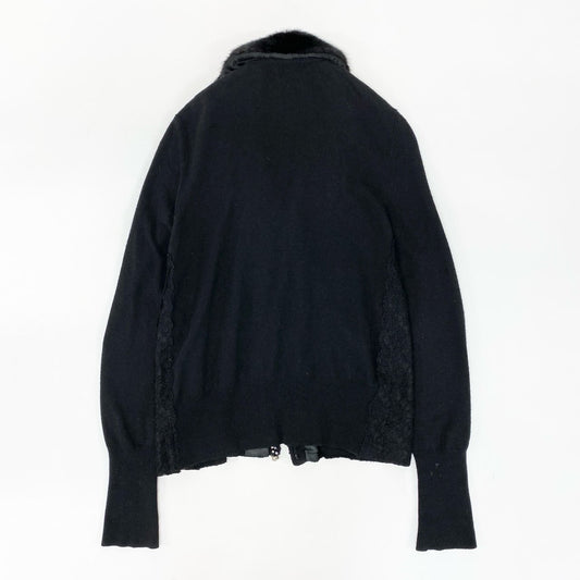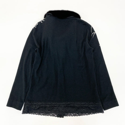 65j9 Blumarine ブルマリン ニットカーディガン ニットセーター 刺繍 ラインストーン レース ファー着脱可 ブラック レディースo07t